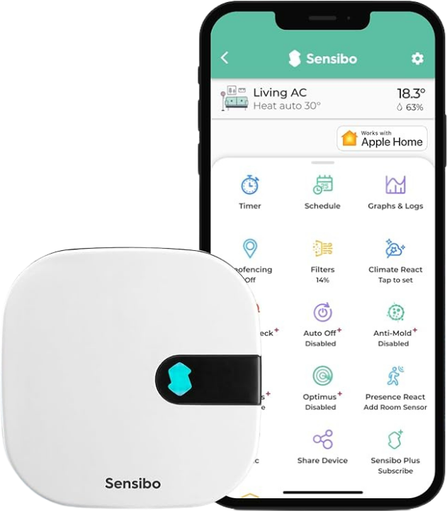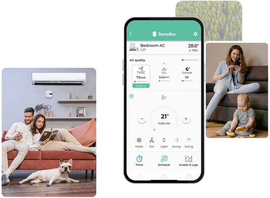 Sensibo este un controler inteligent revoluționar care transformă aerul condiționat tradițional într-unul smart. Funcționează prin conectarea unui dispozitiv Sensibo la unitatea ta AC existentă, permițând controlul de la distanță printr-o aplicație pe telefonul mobil. Astfel, aerul tău condiționat obișnuit devine un dispozitiv conectat, pe care îl poți controla oricând și de oriunde. Instalarea se face în câteva minute, iar Sensibo este compatibil practic cu orice tip de sistem de aer condiționat – de la unități de fereastră și split, până la sisteme centrale.